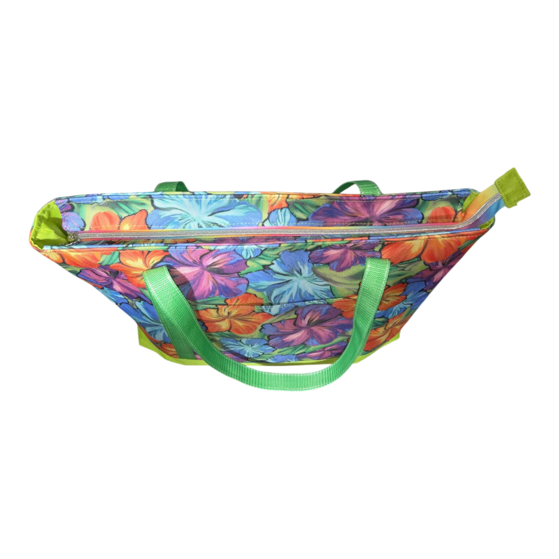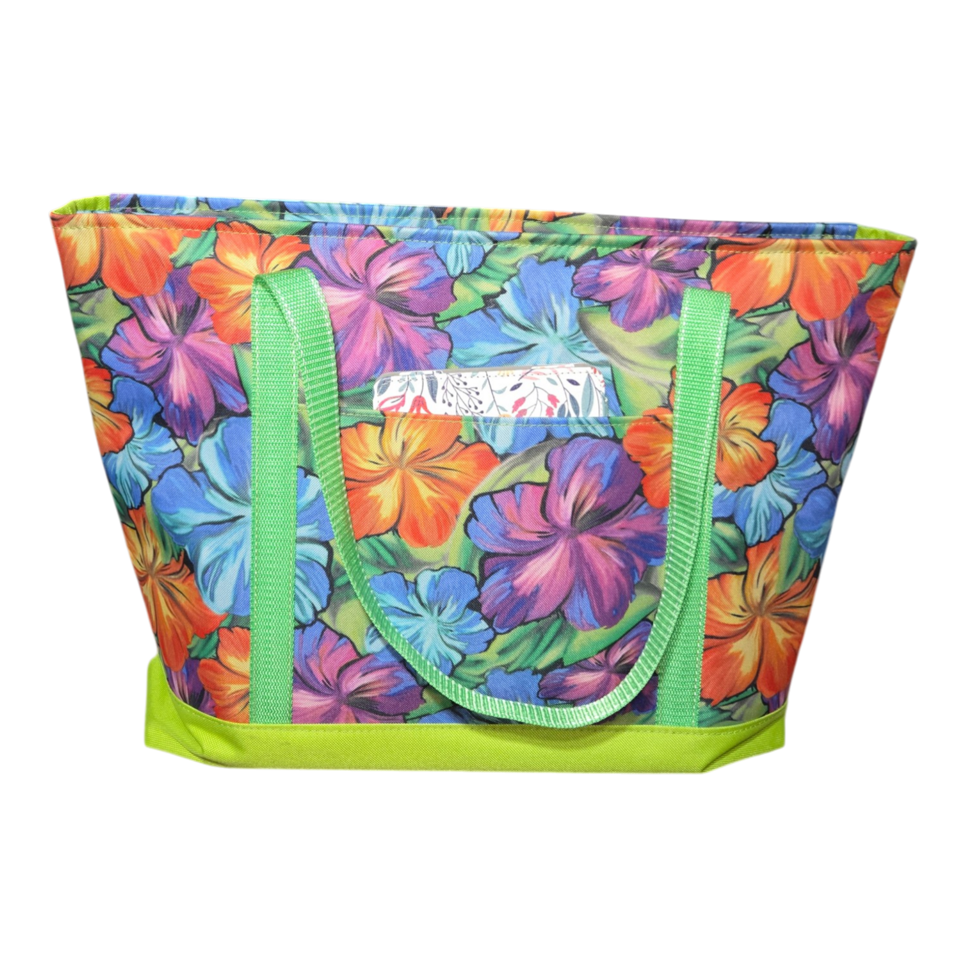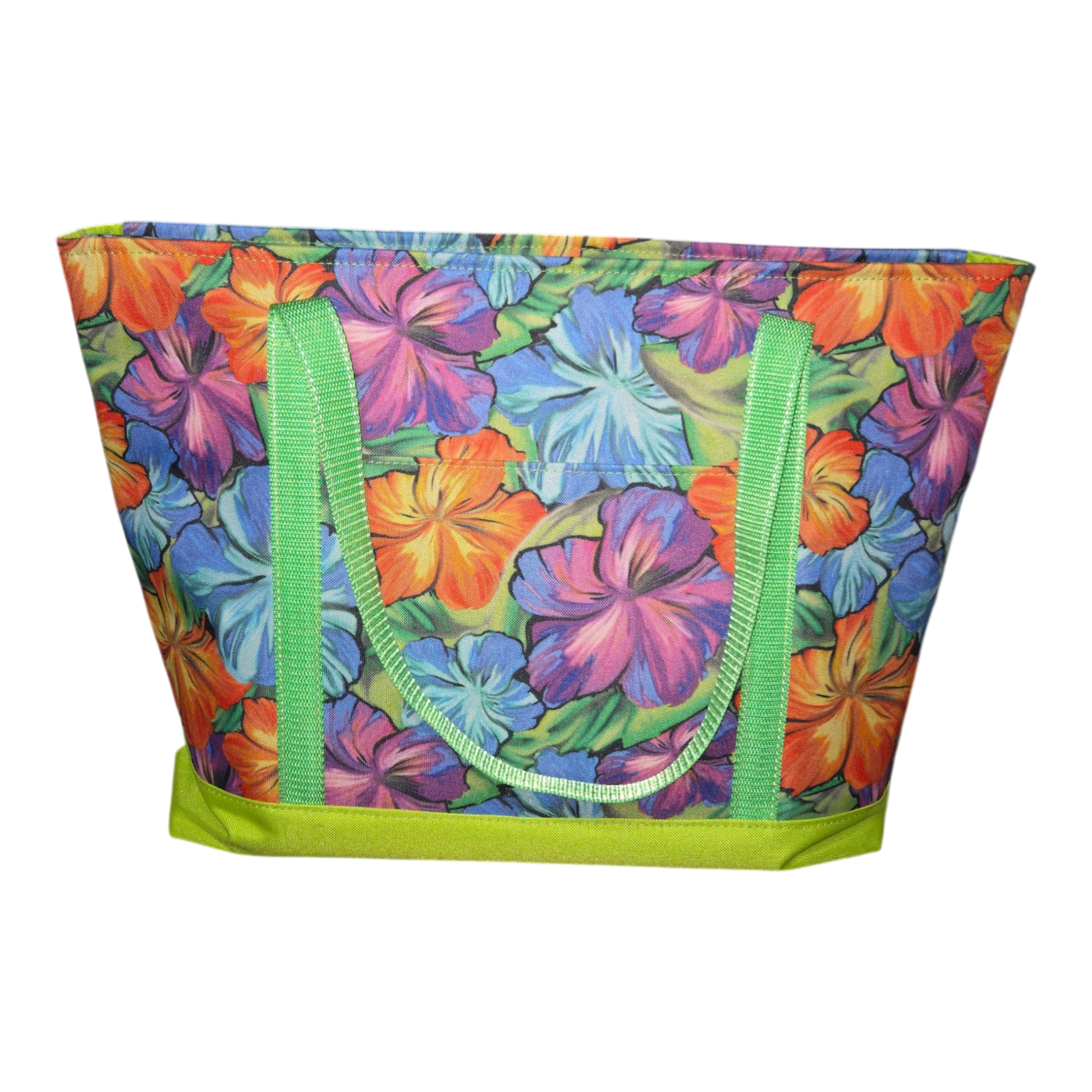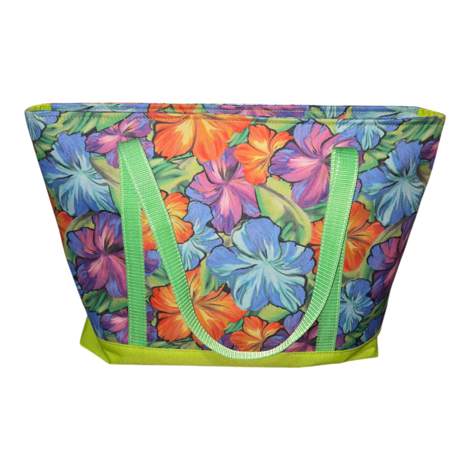 The Aloha Print Isis Tote is where bold tropical energy meets structured everyday function. Featuring a vibrant hibiscus-inspired print paired with fresh green webbing and a coordinating base, this tote makes a statement without sacrificing practicality.